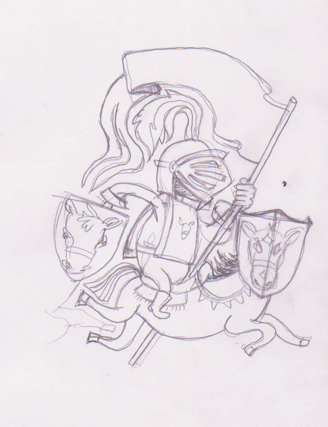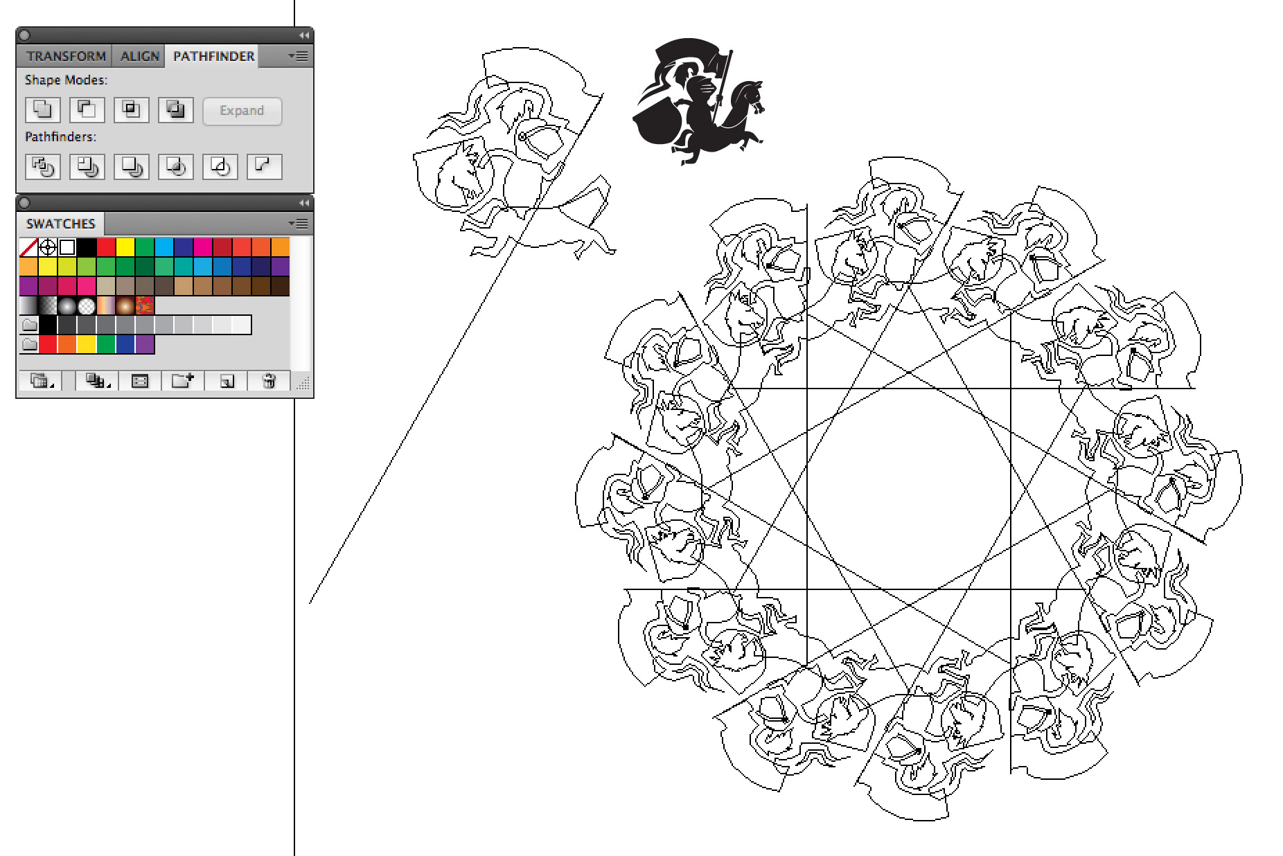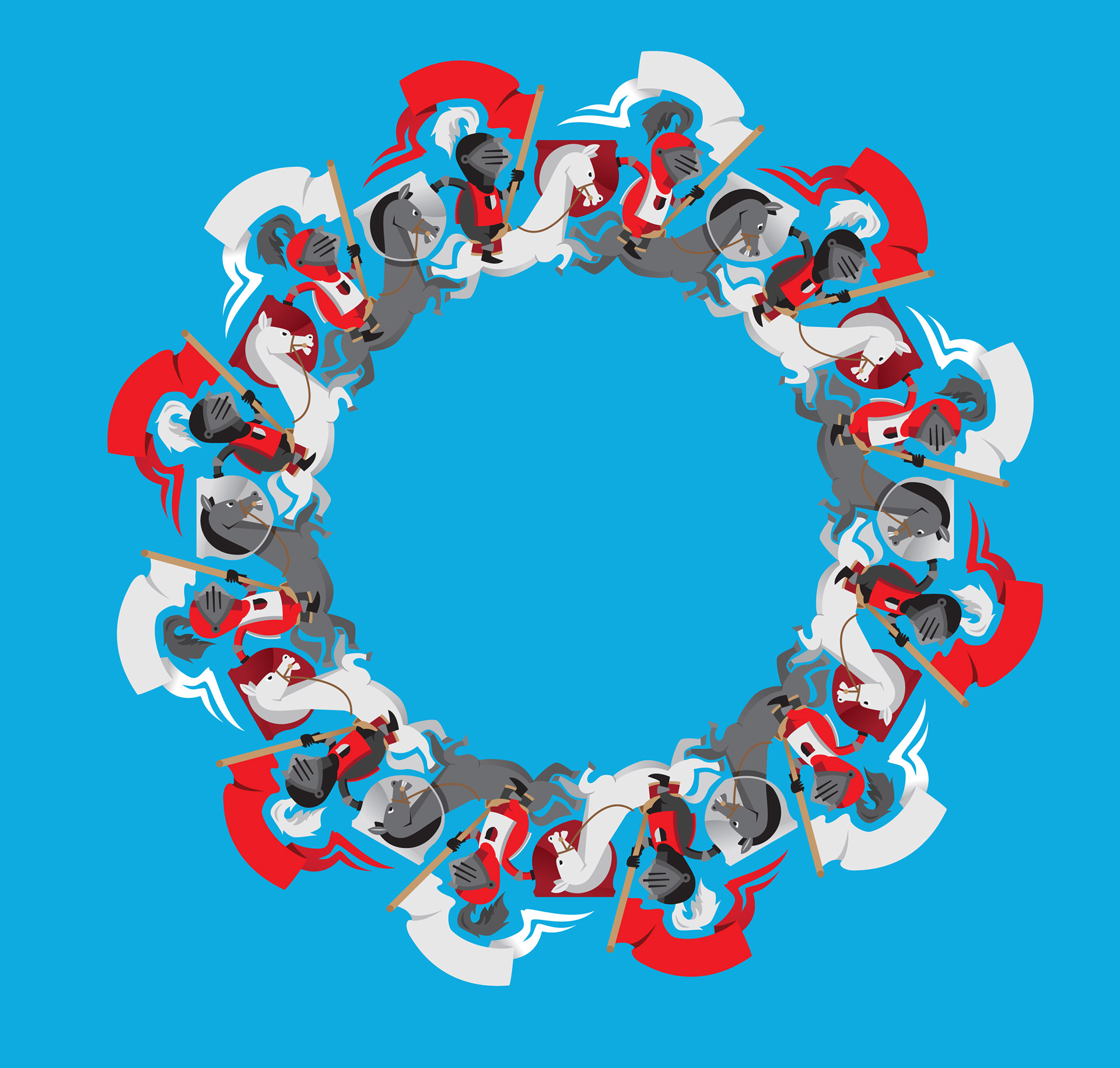Knights tesselation. The optical trick is horses heads on the shields. The white horses are in front of the shields, the grey horses are behind the shields.